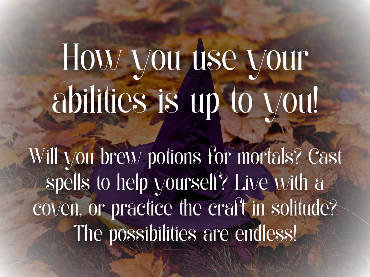 Take the included personality quiz to discover your familiar and your supernatural gifts, then use the prompts to build out your the rules of your magic and your witchy aesthetic. Then you can cast spells and brew potions to your heart's content!